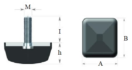 Наименование | A, мм | B, мм | h, мм | Резьба М х I, мм | Твердость резины, Shore |